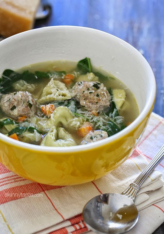 Add the chicken broth and parmesan rind and increase heat to medium-high and bring to a boil. When broth boils, season with black pepper to taste. Reduce heat to medium and gently drop in the meatballs. Cook about 4 minutes.